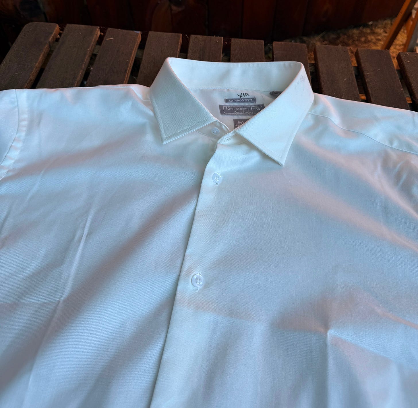 Last weekend, I bought a white button-up from the thrift store with the idea of dyeing it.