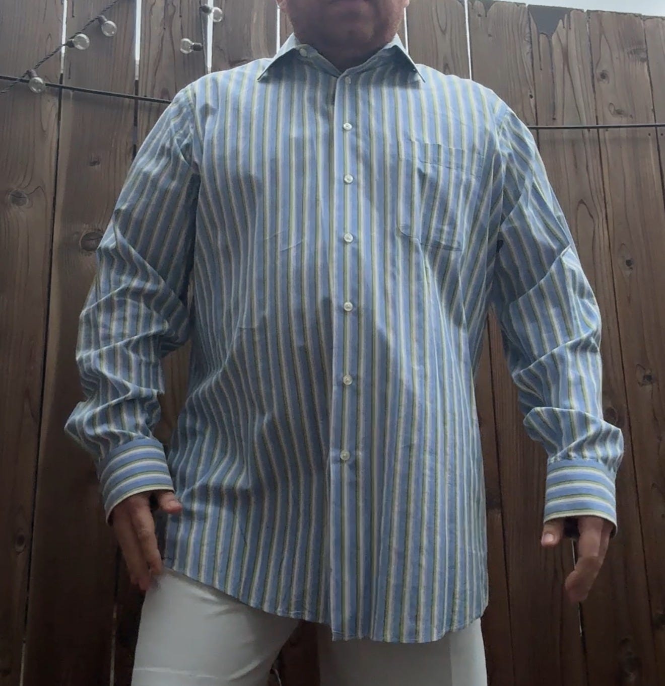 A few days later, I repeated this experiment with another thrifted shirt. This time, I picked a patterned shirt.