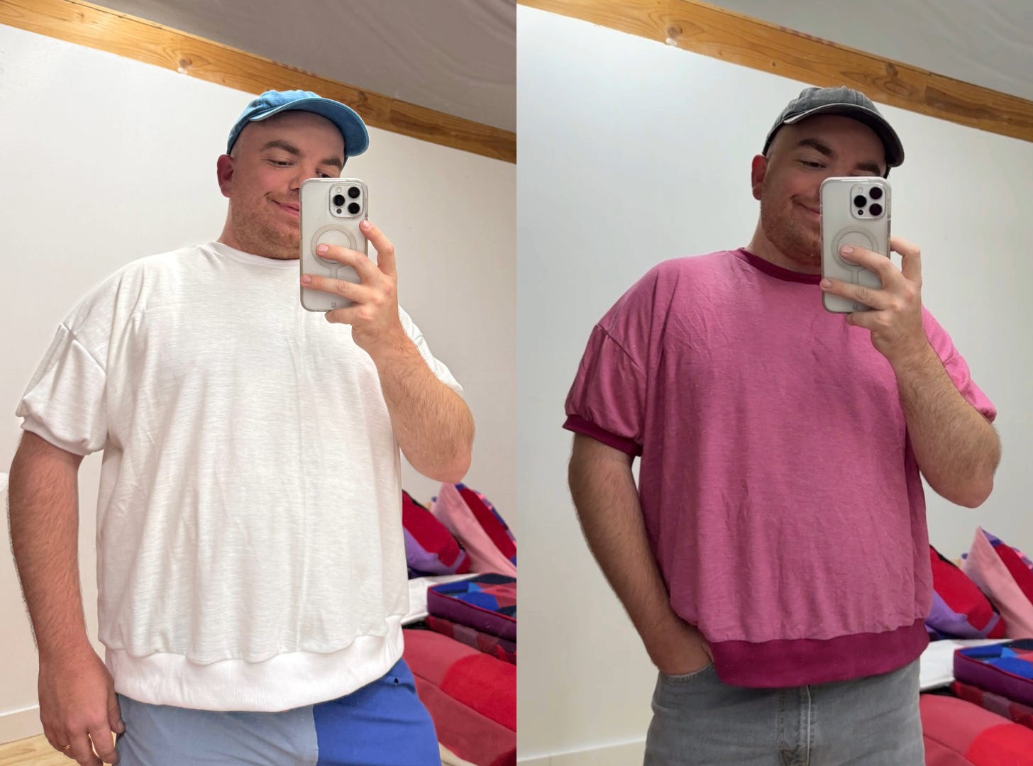 Sewing, of course, is one way to transform clothes, but another way that is equally important to me is dyeing clothes. I have dyed clothes for years, experimenting with different processes and techniques. I even dye clothes that I make for myself, like I did with this t-shirt that I made a couple of weeks back.