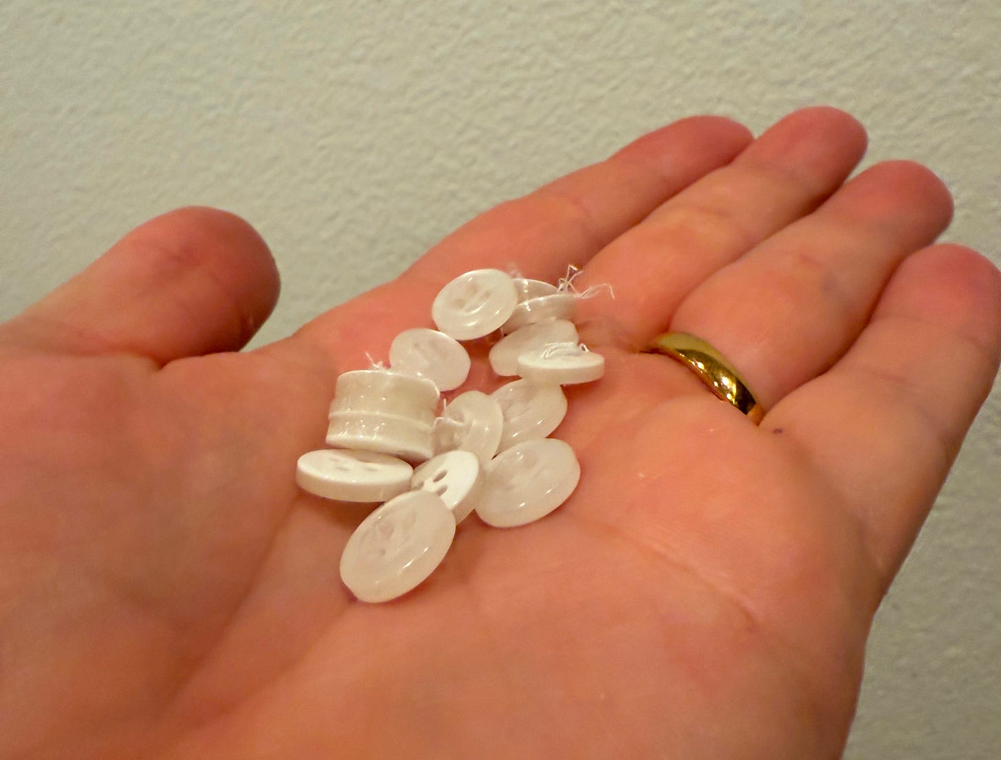 I removed the stitching from each button. I found that removing the little bits of thread is important to prevent the dye from pooling in certain spots.